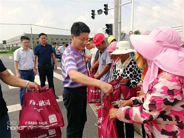8月16日上午,開(kāi)發(fā)公司副總裁劉建華帶領(lǐng)市政工程部、房建工程部和行政人事部部門(mén)負(fù)責(zé)人來(lái)到公司項(xiàng)目工地,現(xiàn)場(chǎng)慰問(wèn)了奮戰(zhàn)在高溫一線(xiàn)的企業(yè)員工和建筑工人,并親自給他們遞上了毛巾、肥皂、洗發(fā)水、清涼油等防暑降溫物品。