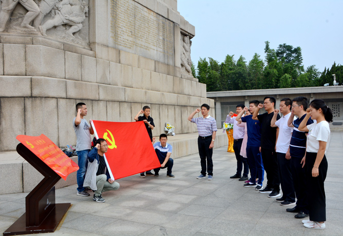 在淮海戰(zhàn)役烈士紀(jì)念塔前,大家駐足瞻仰,對(duì)烈士們肅然起敬。在公司黨支部書(shū)記劉建華的帶領(lǐng)下,全體黨員面對(duì)鮮紅的黨旗,舉起右手,重溫入黨誓詞,“我志愿加入中國(guó)共產(chǎn)黨,擁護(hù)黨的綱領(lǐng),遵守黨的章程,履行黨員義務(wù),執(zhí)行黨的決定……”,鏗鏘有力的宣誓,向?yàn)樵诨春?zhàn)役中犧牲的先烈們表示深深的敬意,表達(dá)了全體黨員愿為社會(huì)主義事業(yè)奮斗終身的堅(jiān)定信心。隨后,大家懷著崇敬的心情瞻仰了在戰(zhàn)役中英勇?tīng)奚牧沂坑⒚?。在紀(jì)念館展廳,大家都認(rèn)真參觀,仔細(xì)聆聽(tīng)講解員對(duì)歷史的講解,每到一個(gè)展柜都會(huì)駐足觀看圖片資料,了解淮海戰(zhàn)役的整個(gè)過(guò)程,深深感受到了革命先烈們的非凡膽識(shí)和英勇壯舉,并對(duì)人民群眾踴躍支持前線行為表示由衷贊嘆。