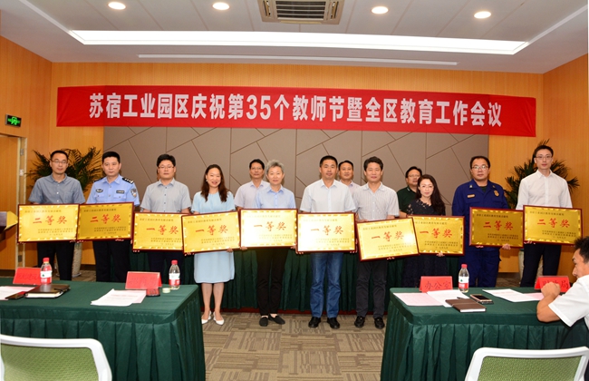 9月10日下午,蘇宿工業(yè)園區(qū)召開慶祝第35個(gè)教師節(jié)暨全區(qū)教育工作會(huì)議,開發(fā)公司喜獲園區(qū)教育發(fā)展貢獻(xiàn)一等獎(jiǎng)。