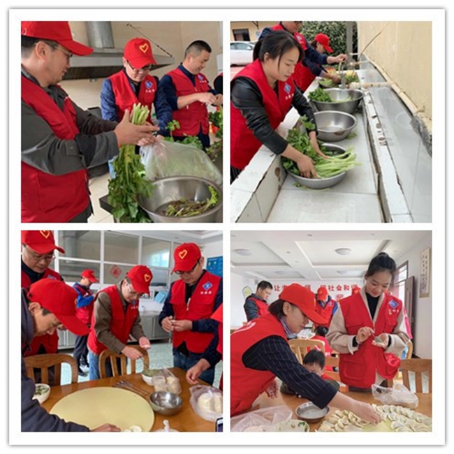 大家剛到敬老院放下為老人帶來的食用油、牛奶、豆奶粉、餅干等食品后就立即分組忙碌起來。有的洗菜、切菜、做餃子餡、包餃子;有的為老人表演節(jié)目、陪老人聊天;工程管理專業(yè)的志愿者幫助老人檢修房屋……原本沉寂的敬老院頓時熱鬧了起來。