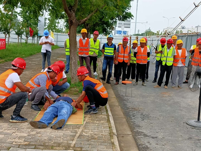 近期,市政工程部在園區(qū)鏡泊湖路東延段施工現(xiàn)場組織開展防暑降溫應(yīng)急救援演練。由鏡泊湖路項(xiàng)目班組實(shí)施模擬現(xiàn)場,開發(fā)公司代建所有市政工程項(xiàng)目現(xiàn)場觀摩學(xué)習(xí)。