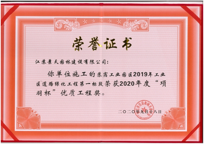 近日,由江蘇省蘇州宿遷工業(yè)園區(qū)開發(fā)有限公司建設(shè)管理的蘇宿工業(yè)園區(qū)2019年工業(yè)區(qū)道路綠化工程第一標(biāo)段榮獲2020年度“項(xiàng)羽杯”優(yōu)質(zhì)工程獎。