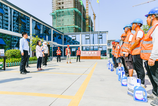 炎炎夏日送清涼,絲絲關(guān)懷暖人心。持續(xù)高溫悶熱天氣,給堅守一線工人帶來了嚴峻“烤”驗,也時刻牽動著公司領(lǐng)導的心。8月10日上午,城發(fā)公司董事長、總經(jīng)理李蘭霞,總經(jīng)理助理陸永軍、張驥一行對公司在建項目一線施工人員和明日鄰里中心物業(yè)人員開展防暑降溫送清涼慰問活動,為奮戰(zhàn)在高溫一線的勞動者們送上一份清涼、一份關(guān)懷。