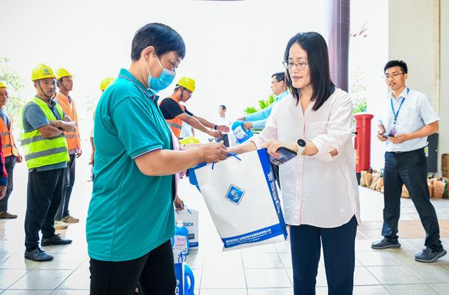 “大家在做好本職工作同時,注意保重身體,防暑措施一定要做到位,確保安全生產(chǎn)。”在明日鄰里中心慰問現(xiàn)場,李蘭霞與物業(yè)員工們親切交談,感謝他們?yōu)楣景l(fā)展和民生保障付出的辛勤努力,反復叮囑大家要提高夏日防暑意識,做好自我防護,確保以更好的狀態(tài)投入到工作中?,F(xiàn)場強調(diào)各部門要守牢安全底線,做好高溫時節(jié)各項工作,普及好防暑降溫和急救知識,確保廣大一線職工的安全。