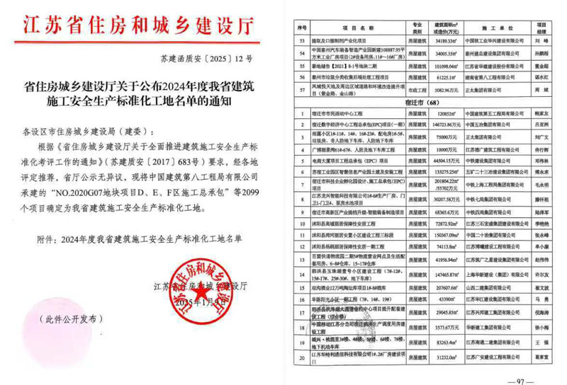近日,江蘇省住房和城鄉(xiāng)建設(shè)廳發(fā)布了《2024年度江蘇省建筑施工安全生產(chǎn)標(biāo)準(zhǔn)化工地名單》,由園區(qū)城發(fā)公司負(fù)責(zé)建設(shè)管理的蘇宿工業(yè)園區(qū)智慧信息產(chǎn)業(yè)園土建及安裝工程位列其中。