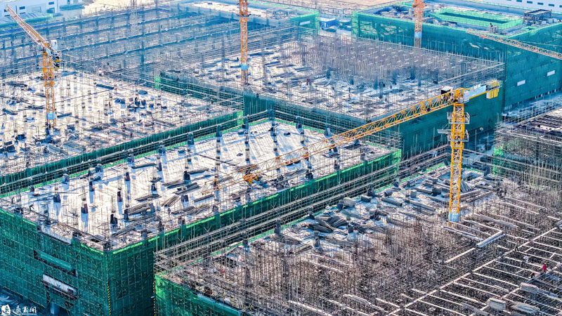 1月7日,蘇宿工業(yè)園區(qū)智慧信息產(chǎn)業(yè)園項目施工現(xiàn)場,工作人員正在有序施工。