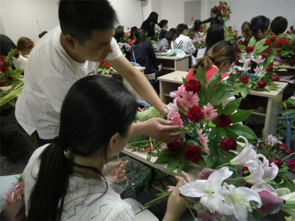 學員們在培訓中積極參與互動實踐,按照老師要求進行花材處理、構(gòu)思設計,充分發(fā)揮自己的審美想象力,運用老師傳授的技巧,通過自己的奇思妙想完成了手捧花、圓形盆花、花籃等培訓作品。